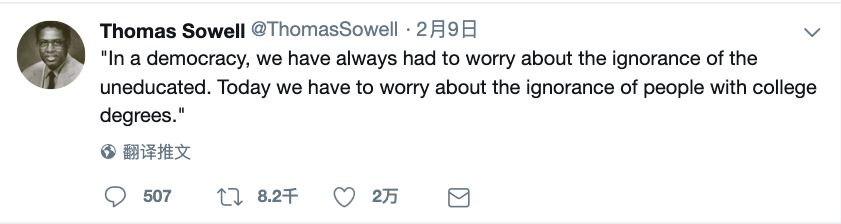 13. “在民主国家,我们过去总是担心未受教育者的无知。今天,我们却不得不担心拥有大学学位之人的无知。”