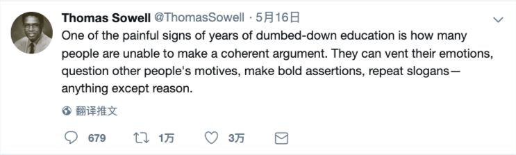 7. “多年来,教育水平下滑的一个可怕迹象是,太多的人无法提出条理清晰的论点。他们会发泄情绪、质疑别人的动机、做出大胆的断言、重复宣传口号,除了运用理性,他们什么都会。”
