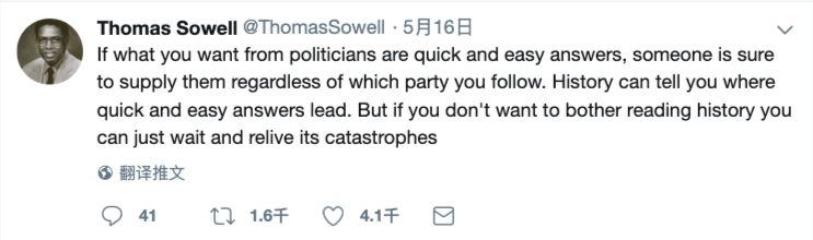 8. “如果你想从政客那里得到快速而简单的答案,无论你支持哪个政党,肯定会有人提供这种答案。历史会告诉你,这种答案的后果是什么。但是如果你不想费心去读历史,你可以等着重温历史上的灾难。”