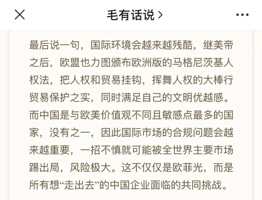 我几天前刚好表达过类似的担忧,中国企业“走出去”战略会遇阻,基本上,出海一个,冒尖一个,出头一个,就会马上被掐尖,被收割,被灭掉。冷战也是战争,是慢性战争、消耗战争、不流血的战争,如果还对此心存幻想,就想想TikTok。