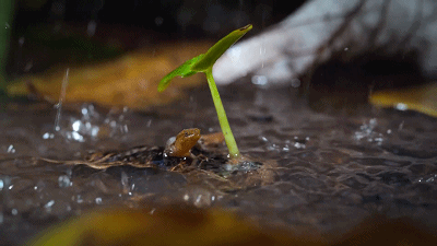 透过镜头我们才发现,在这个小小世界,雨点像炸弹一样落下,茂密的杂草变成一片森林,一块小小的石头就是一座高山,大象踩出的小水坑形同汪洋大海...