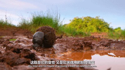 倔强的屎壳郎认真地推着自己的粪球,一次次失败,一次次重新开始,就像推石头的西西弗斯一样...