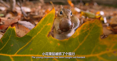 花栗鼠勤劳地搜集过冬的橡子,在寒冬来临之际,它终于可以安心地喘口气儿...