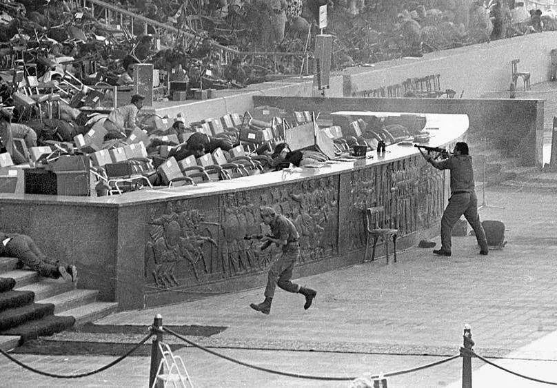 1981年10月6日,埃及首都开罗东郊,旗帜招展,人山人海,这里正在举办庆祝十月战争(第四次中东战争)8周年的阅兵典礼。主席台上,总统萨达特频频向士兵致意,所有人脸上都洋溢着胜利的喜悦。