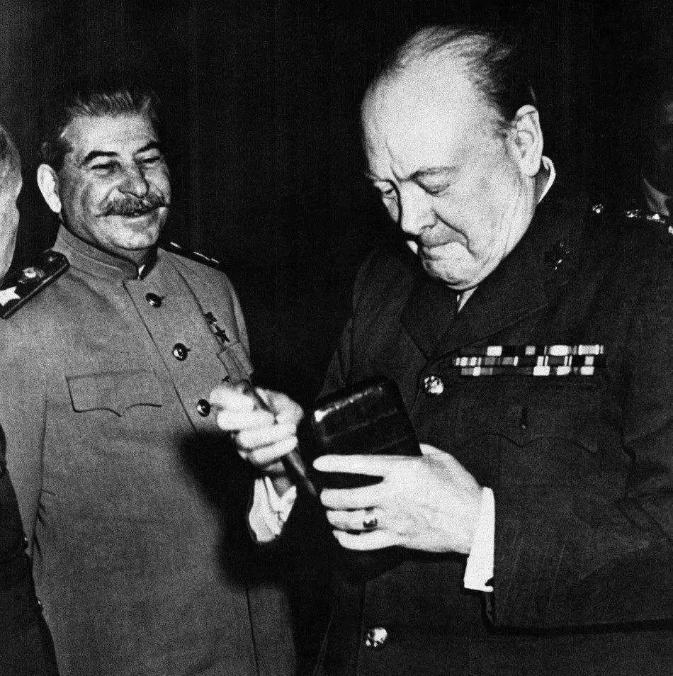 趁斯大林在听翻译时,丘吉尔拿过来半张纸,在上面写道: