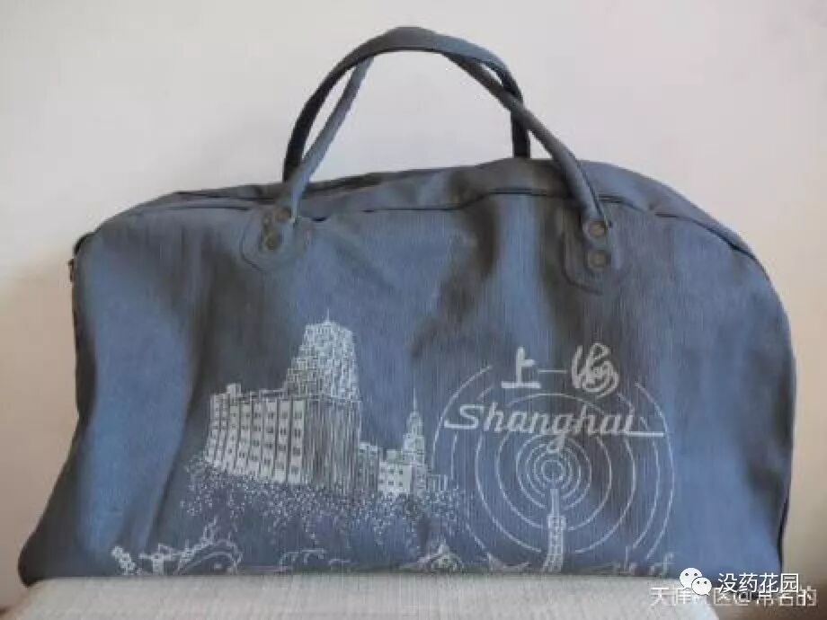 我查了下,它们大约是从文革期间一直到80年代中期流行的物品,有些上面还有北京、天津、哈尔滨等字,都是旅行热门地。通常人们在旅行时购买,有点“到此一游”的意思,回家拿来当旅行包,也可以炫耀下去哪儿旅行过。到了1996年,这种包就显得就很老土,应当已停售。