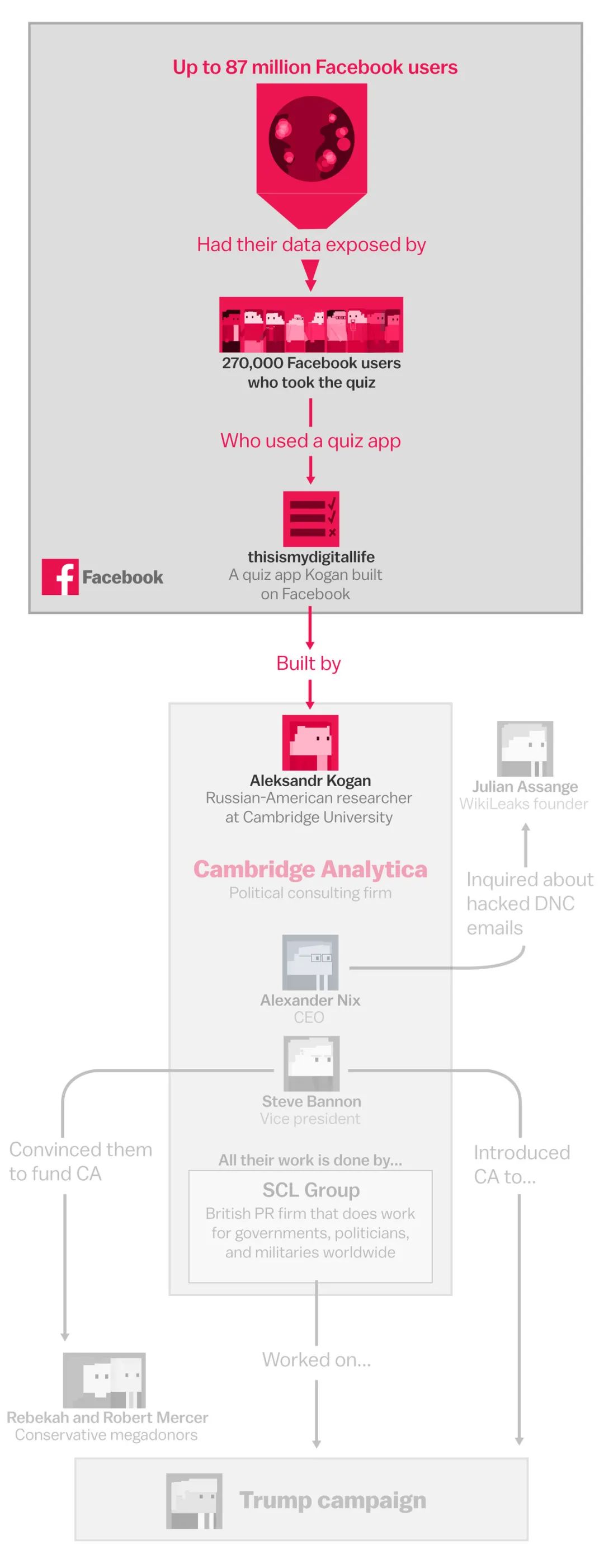很多人可能不明白为什么数据这么重要,因为这本身就是超出人类理解范围的东西。目前的算法有多强大呢?剑桥大学的一位学者Aleksandr Kogan从2013年起开发了一个叫Cambridge Analytica应用程序算法,能够通过一些问卷问题、以及收集脸书的个人数据,来为用户建立心理特征档案。2016年川普竞选总统的时候,使用了这些档案,将不同阵营的选民分类,采取不同的宣传策略——如果你是川普的支持者,就会给你展示川普竞选胜利的视觉效果,推送投票站的信息,引导你去投票;如果你在两党之间摇摆不定,就会为你推送一些支持川普的名人的背书,以及希拉里的负面形象。
