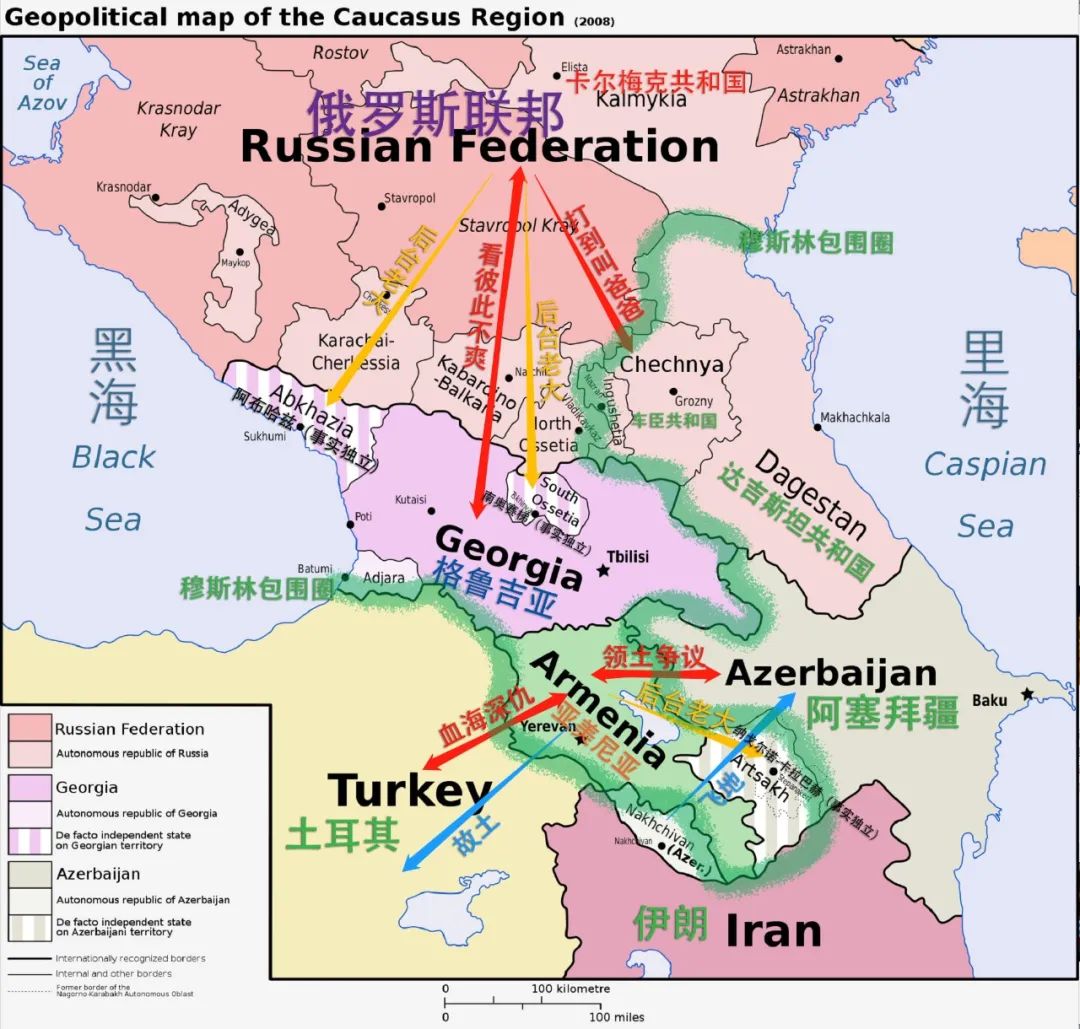 所以在写下去之前,我首要先把高加索这些国家及其邻国之间的关系罗列一下:
