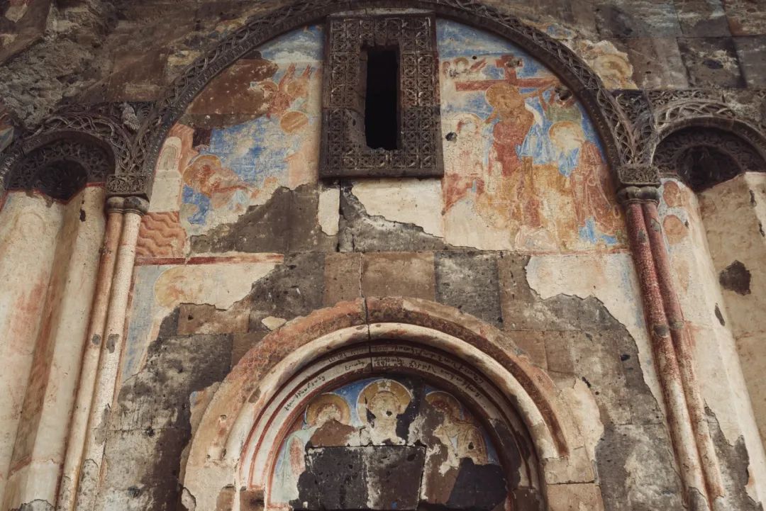 阿尼的大多数建筑如今都只剩地基,大自然正在慢慢夺回原本属于它的领地,你站在废墟中可能只看得到凹凸不平的地面,不过从无人机的视角则能够清晰地分辨出原来的街道、房屋。仅存的几座教堂远远望去似乎孤零零的,唯有走进其内部才能感受其宏伟,难以想象这些幸存的建筑大多始建于一千年前(建筑上内部可以找到当年的铭文)。最大的主座教堂教堂穹顶在七百年前的大地震中崩塌,基本结构却依然完好;另一座教堂内里的壁画早已褪色斑驳,却仍是让人能够浮想出当初的辉煌。这些亚美尼亚教堂的设计风格成为了经典,如今整个外高加索的教堂大都沿用了这一设计。