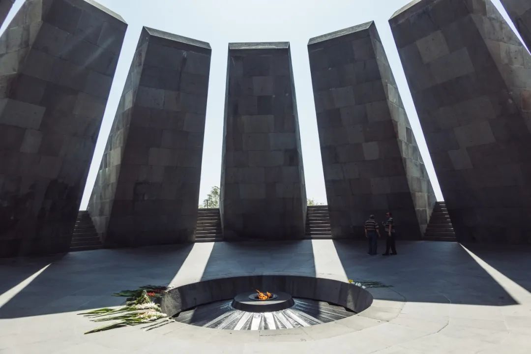 今的亚美尼亚首都埃里温,有一座亚美尼亚种族灭绝纪念馆。在纪念馆的广场上,一座44米高的尖锥式样的纪念碑刺破苍穹,象征着亚美尼亚的浴火重生;12块石板围成了一个永恒神殿,网上说代表被强占的12个省份,但这种说法已被建筑师本人否定;神殿中心有一处永恒之火,献给当年丧生的百万同胞。