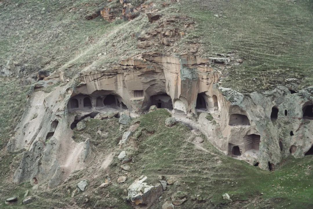 鼎盛时期的阿尼由于人口太多,城里面容纳不下,于是当时的一些定居者在城外河谷的悬崖岩石中开凿了大量洞穴用以栖身,形成了“洞穴村”,这些洞穴想必便是当年的“贫民窟”。而今这里的很多洞穴变成了天然的羊圈牛圈,其中的一个洞穴教堂,里面还保存着一些壁画。