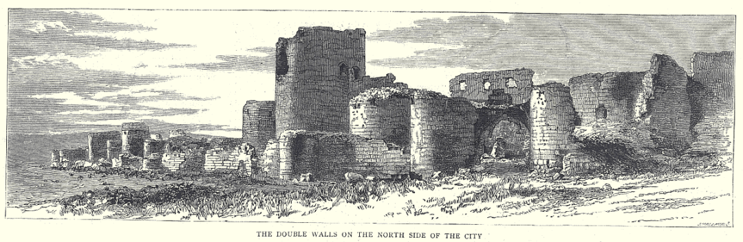 即便是这座遗弃了三百多年的废墟,依然让我感到相当震撼。整座城市三面都是河谷,有着天然的护城河,且地势居高临下。整个遗迹保留得最为完整的部分便是城墙,城墙设计跟欧洲的许多城堡类似,唯一可以通行的北边城墙布满了用于防御的凸出圆形敌台,且建有内外两层城墙。然而即便是这样的设计,也没能抵挡住侵略者的铁蹄。