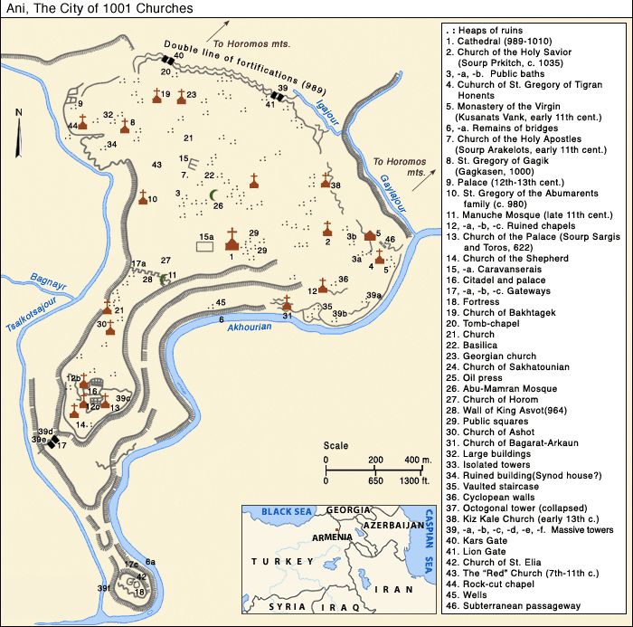 在公元十世纪的鼎盛时期,阿尼曾是世界上最大的城市之一,与拜占庭帝国、波斯帝国、阿拉伯人都有贸易往来,跟当时的君士坦丁堡、巴格达鼎足而立。这座城市刚好占据了陆路贸易的枢纽位置,被称为“一千零一座教堂之城”City of 1001 Churches),是亚美尼亚文化和宗教遗产的重要象征。