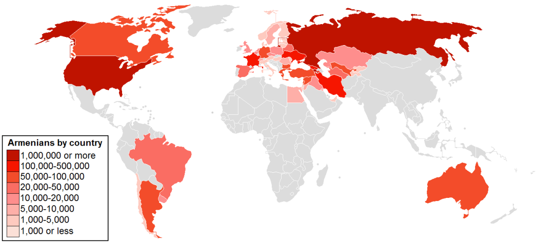 如今亚美尼亚人在世界各地的分布