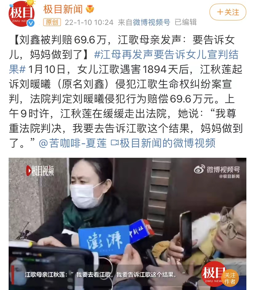 热搜第一!刘鑫判了,江歌妈妈终于赢了
