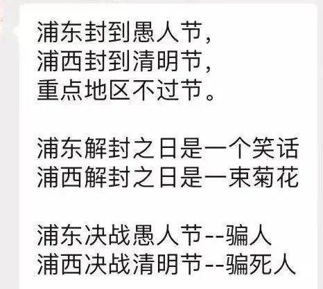 浦东封到愚人节,浦西封到清明节