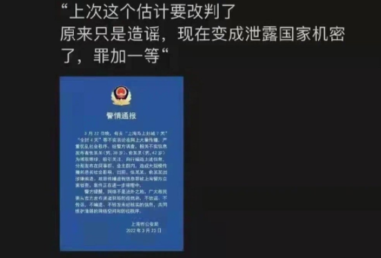 之前的新闻,发布“上海马上封城7天”被抓。一个说封城7天,一个说封城4天,结果政府封了5天。