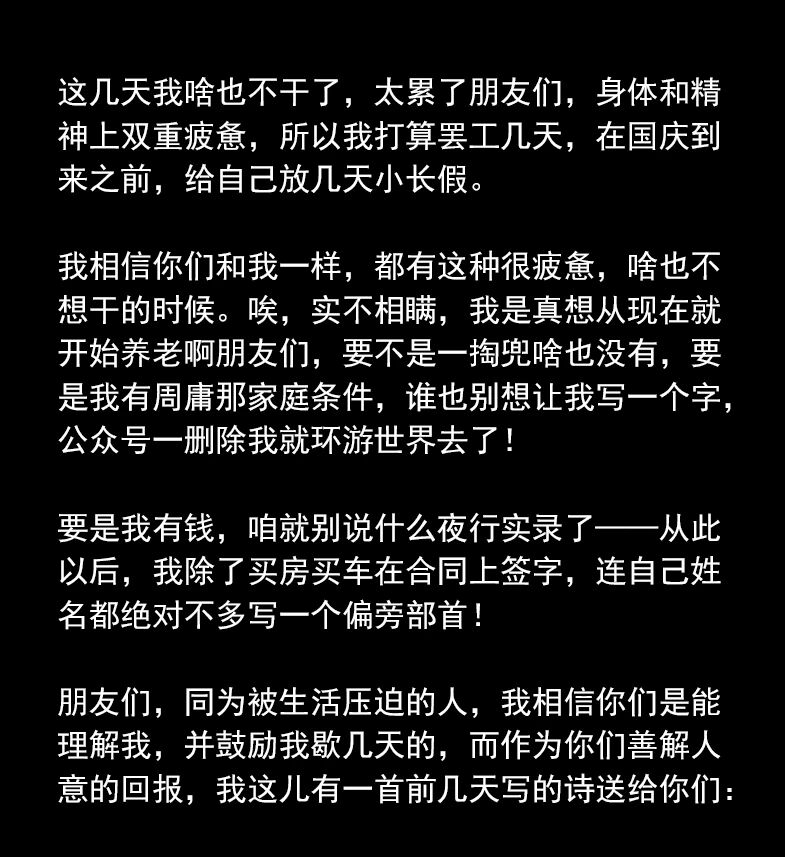 你说这首诗有啥意义?不过是帮我又混过一个周三罢了。