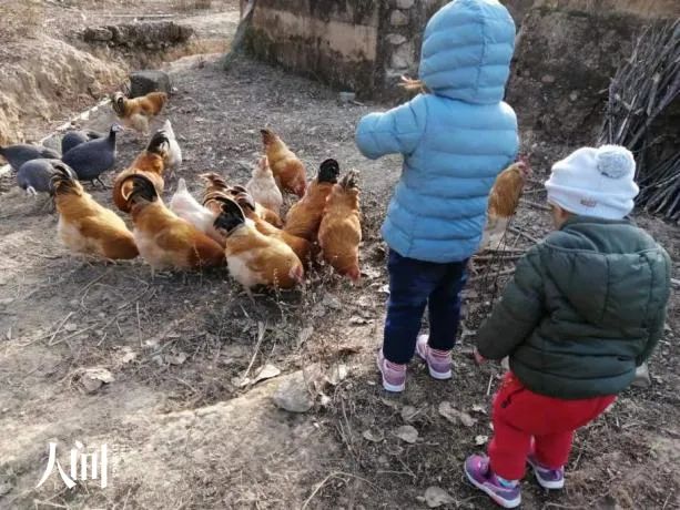 我们没回来之前,只有我父母在家,村庄里留守下来的也大多是和他们一样的老人。可即便是冬日寂静的村庄,也有它的声音——每天早上,天才微亮,我们便听着屋后鸡打鸣的声音睁开双眼,“鸡打鸣了,在叫我们起床呢”。初升的太阳在院子里撒上一层蜜光,两个孩子醒来吃完早餐,便跑去屋后空地上喂鸡。