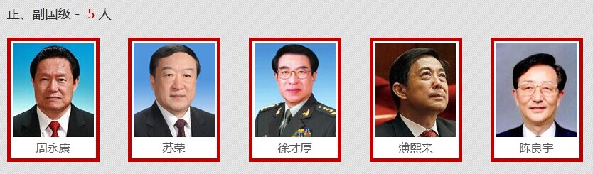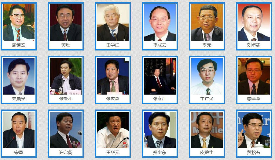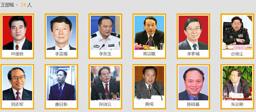 正部级6人:申维辰、李崇禧、李东生、蒋洁敏、李春城、谷俊山。