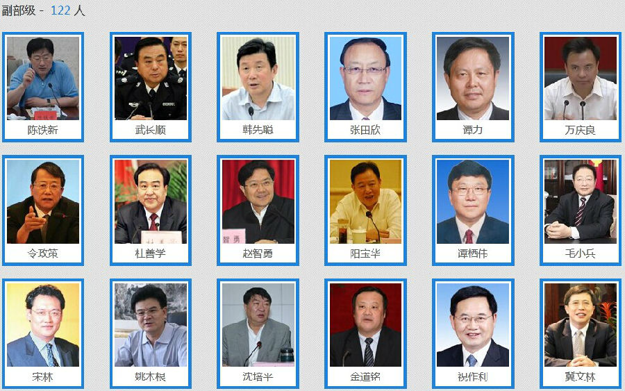 副部级31人:陈铁新、武长顺、韩先聪、谭力、万庆良、令政策、杜善学、赵智勇、阳宝华、谭栖伟、毛小兵、宋林、姚木根、沈培平、金道铭、祝作利、冀文林、杨刚、童名谦、陈安众、许杰、郭有明、陈柏槐、廖少华、季建业、李华林、王永春、李达球、郭永祥、倪发科、刘铁男(这40人的具体涉案金额,等结果出来,会马上公布给大家,敬请期待...)