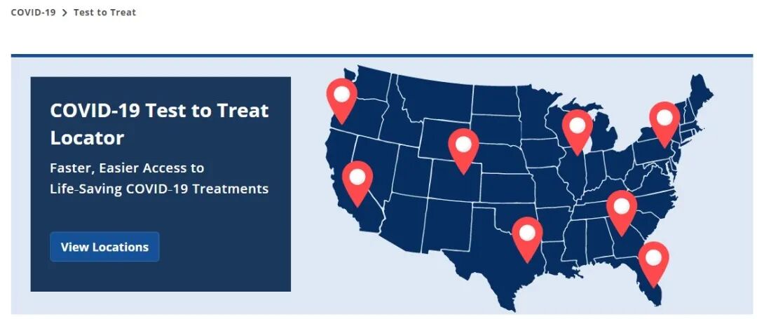 人们可以在指定地点做COVID-19检测,如果检测阳性,并且符合用药条件的话,医护人员会当场开处方,人们在同一个地点拿到药物盒。药物盒里是两种治疗新冠的口服药。这种一站式的检测治疗点有几百个,遍布全美各地。同时,病人也还是可以选择通过自己的医生来治疗。