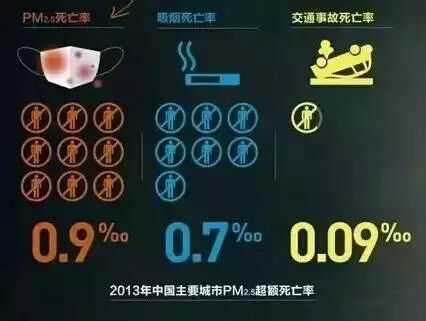 消息二:中国首个评估PM2.5长期暴露对公众健康所产生影响的研究报告出炉,报告指出,大气PM2.5污染导致全国31座省会城市或直辖市中25.7万人超额死亡,超额死亡率平均接近1‰。而在超额死亡的病例中,有相当一部分是肺癌。