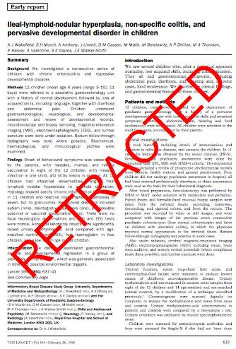 Wakefield et al, 1998, The Lancet, 351, 637-41.