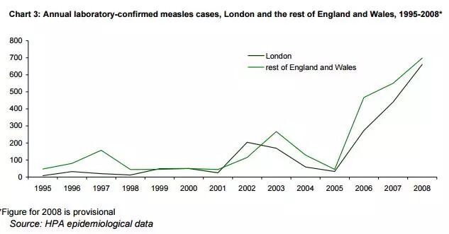 2008年,一度基本被消灭的麻疹,被英国重新提升为局部流行的程度(endemic)。