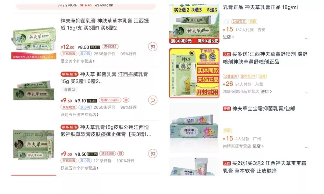再去各个电商平台上搜了一下,包括京东、淘宝这样的大平台,神夫草依然在热卖,有的店光评价就好几千个。