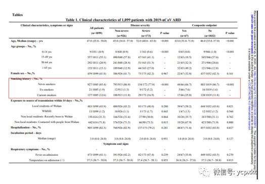 从钟南山研究论文数据来看,但患者中吸烟者仅仅占12.6%(1099例患者中15岁以下患者只有9例,因此数据差别不大)
