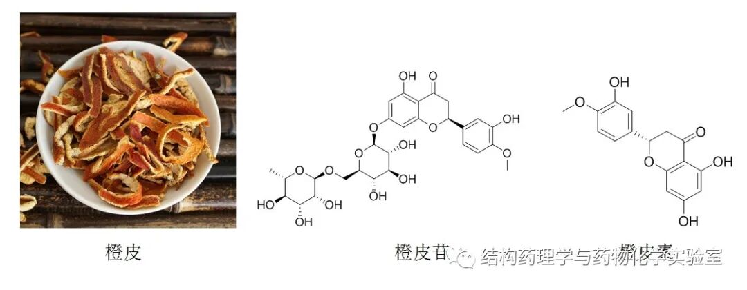 此前,华中科技大学同济药学院李华教授和沈阳药科大学无涯创新学院陈丽霞教授合作发表在《药学学报》英文版的文章“Analysisof therapeutic targets for SARS-CoV-2 and discovery of potential drugs bycomputational methods”通过计算机虚拟筛选方法发现橙皮苷可能通过结合在新冠病毒S蛋白受体结合结构域(RBD)从而破坏RBD与ACE2(新冠病毒的人类受体)的相互作用,这是研究者在ZINC药物数据库和中药、天然产物数据中筛选得到的唯一一个能够靶向在S蛋白和ACE结合界面的化合物,另外橙皮苷与病毒的3C样蛋白酶也有非常好的结合亲和力[1]。柑橘类的果皮富含橙皮苷,包括传统中药陈皮和广陈皮,富含橙皮苷的中药还有橘红和化橘红等。陈皮和化橘红是《新型冠状病毒肺炎诊疗方案(试行第七版)》中医药部分推荐的中药复方中的主要药材之一[2]。