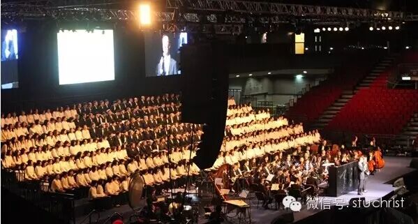 15日晚7点半,天歌音乐布道会由500人联合诗班,60人的联合交响乐团共同演奏《复活节大合唱》拉开序幕,赞美歌声震撼全场。