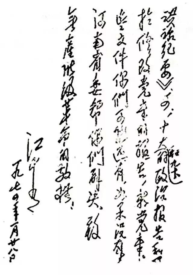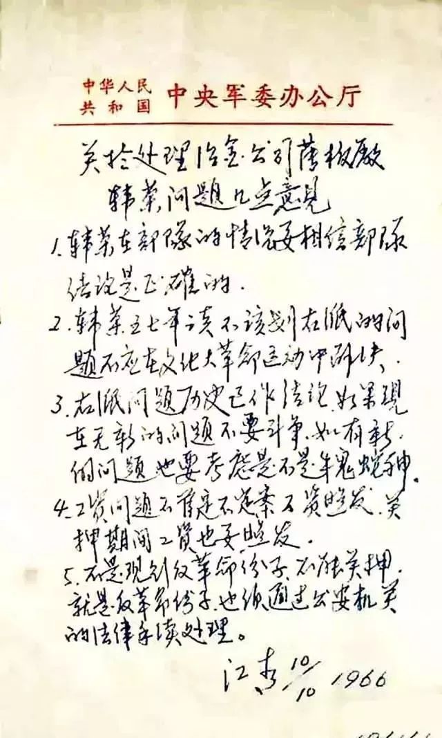 江青在1966年10月10日的批示意见硬笔手迹