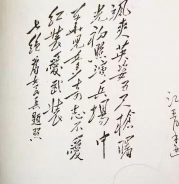 但这二十个字,情感何人可相诉?不如“来日西池会,鹓鹭同飞盖”。携手处,仅有她决定继续追随他的丈夫去了。人去也,飞红万点愁如海。“乱云飞渡仍从容”。就这样,江青这位有梦的女人结束她曲折离奇的一生。剩下的只有这短小的墨迹,见证她跟随主席学习过的光辉岁月~
