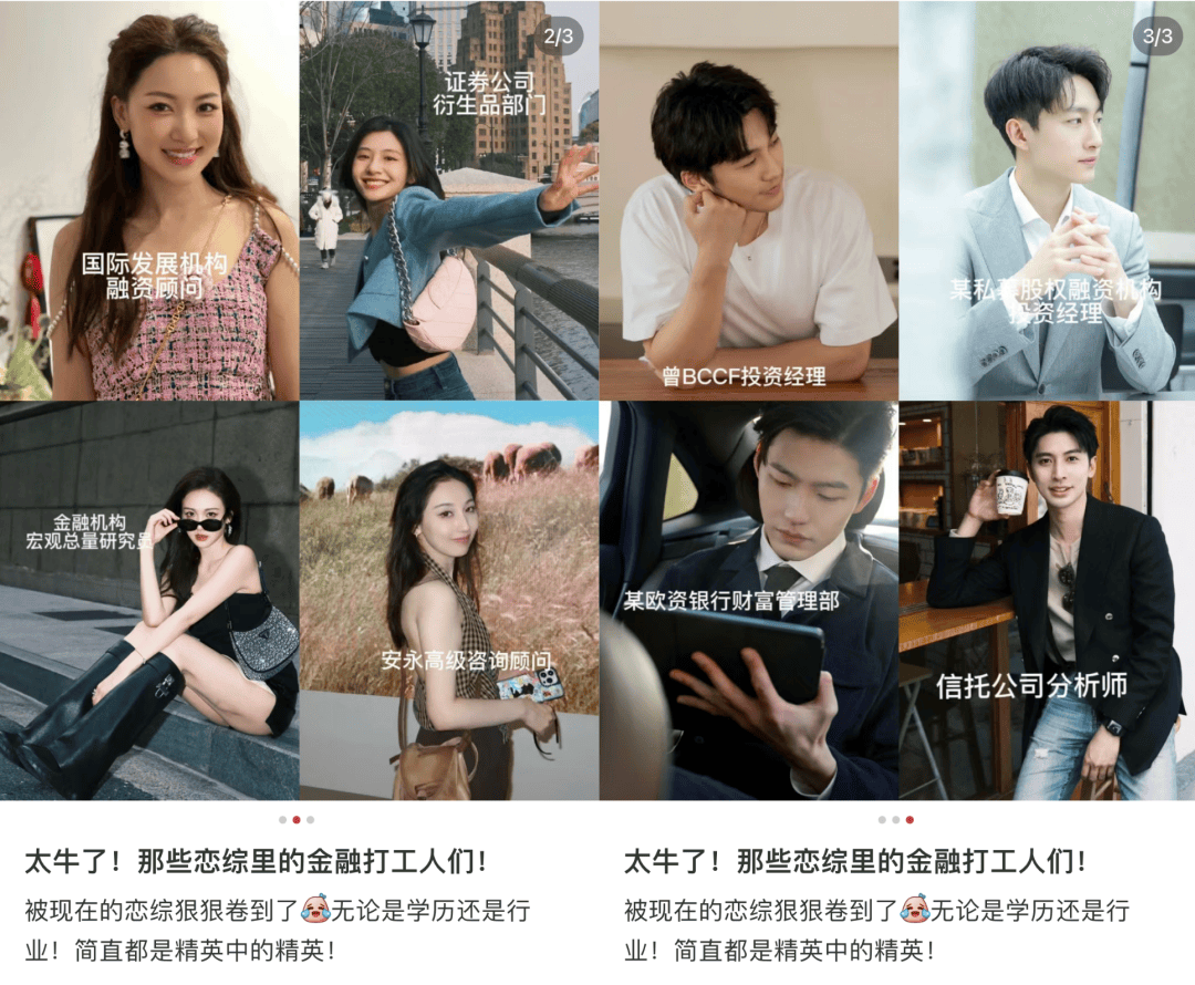 与学历崇拜相对应的是,高考高分段热门行业——金融,成了向恋综输送嘉宾的大本营。