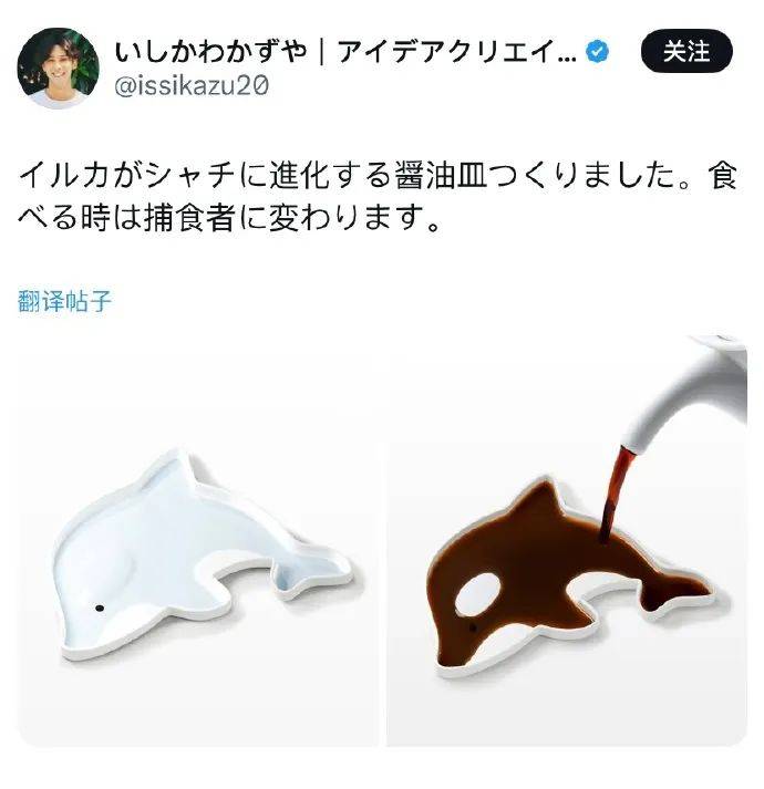 一款海豚进化成虎鲸的酱油碟。用餐时候,它会变成捕食者@杀死痛经