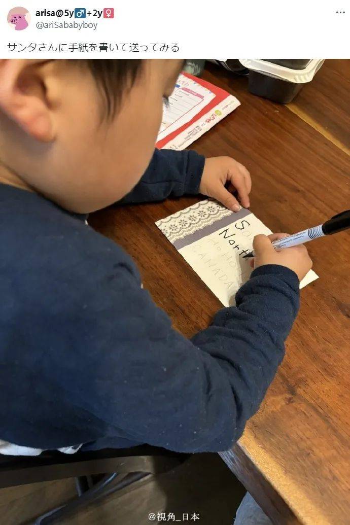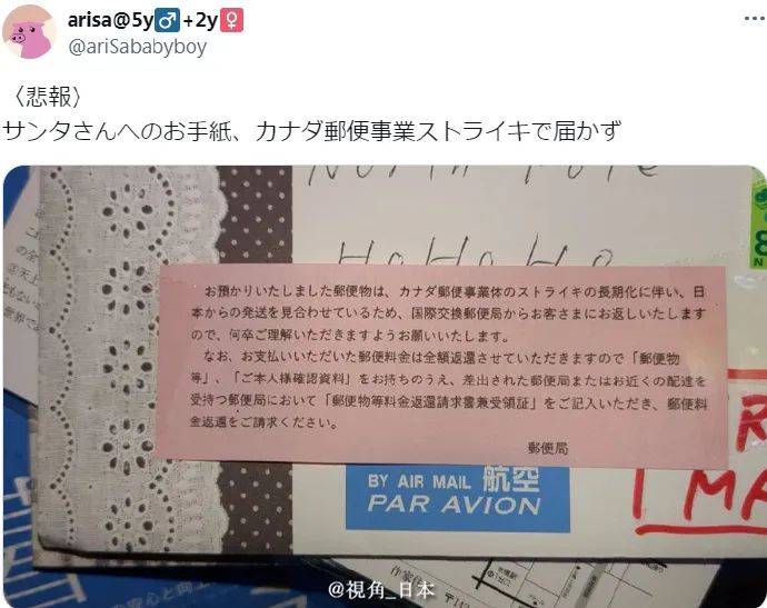 上个月底宝宝写给圣诞老人的信,因为加拿大邮政罢工被退回来了…@御宅御