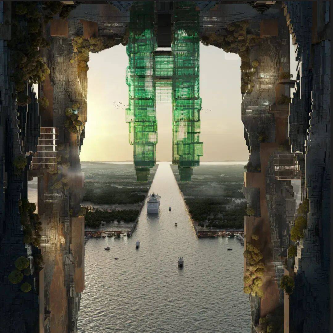 比如那个刷屏全网的The Line,说要建两座500米高、170公里长的镜面摩天大楼,像城墙一样横跨沙漠。