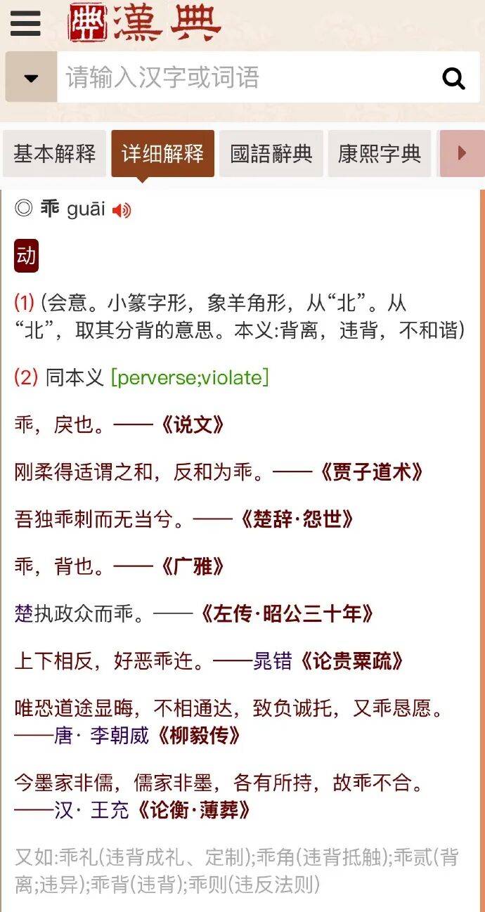 上网又学到一个冷知识,在古汉语中,“乖”的原意是扭曲本性、背离、反常、违抗。所以常见的组词才是乖张、乖戾、乖僻……都不是温顺听话的意思。孩子背离本性才叫乖,没毛病。@边雀投江