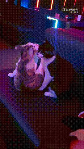 两只猫已经舔得不知天地为何物了