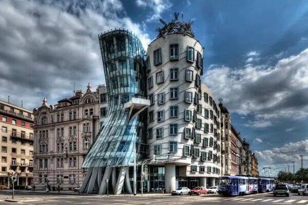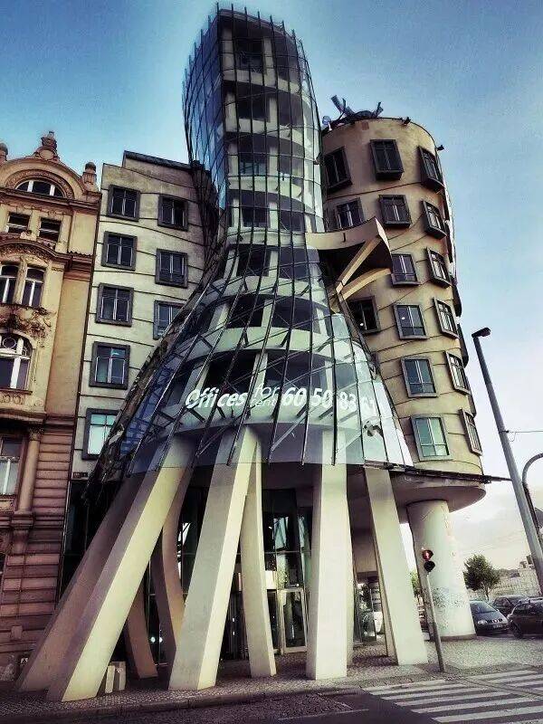 这是盖里手下的办公楼房。被媒体称为“会跳舞的房子”,它看起来就像两个正在摇摆的人,窗户都不在一条线上。
