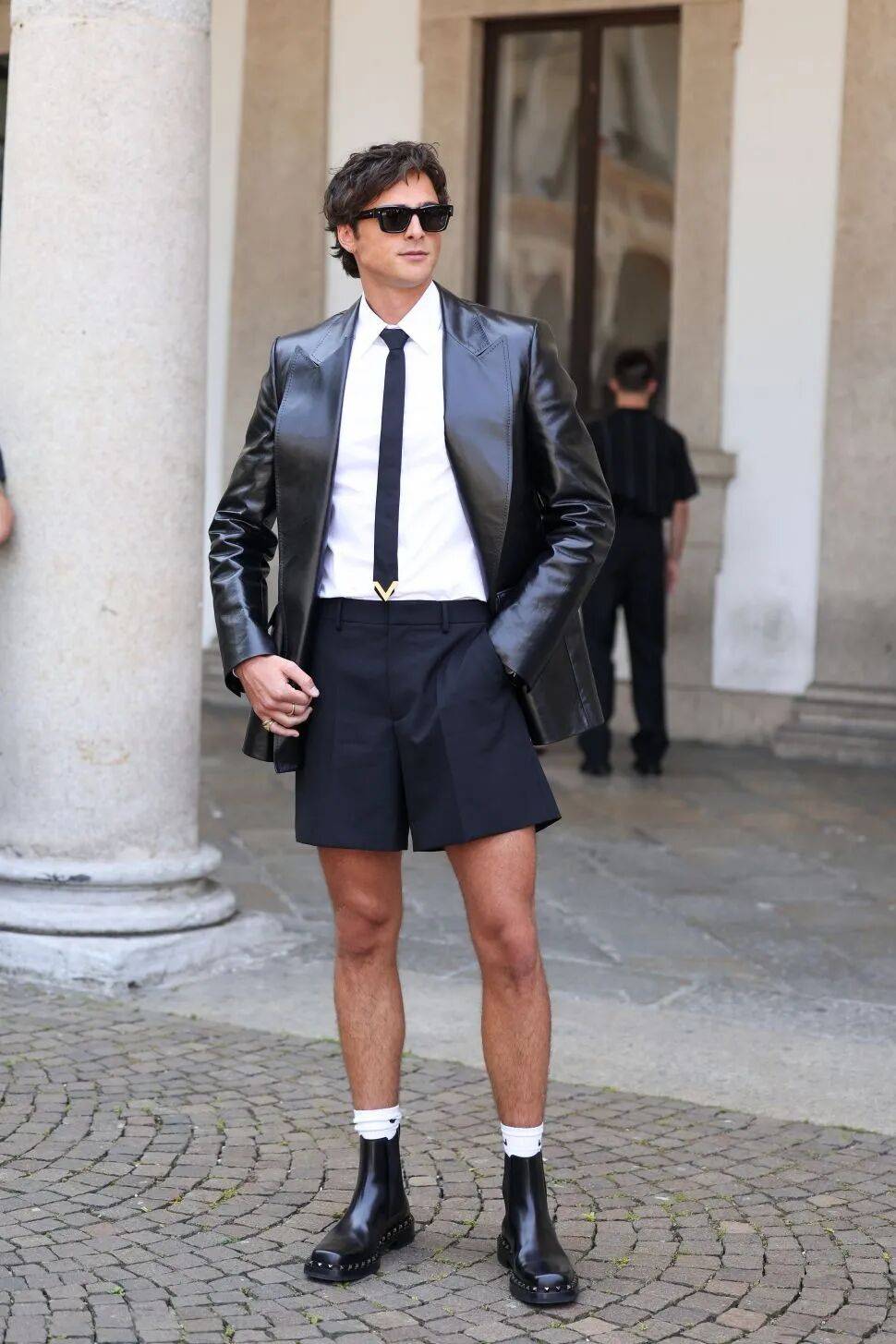 黑白正装配三分短裤,也能用一双大长腿驾驭住。