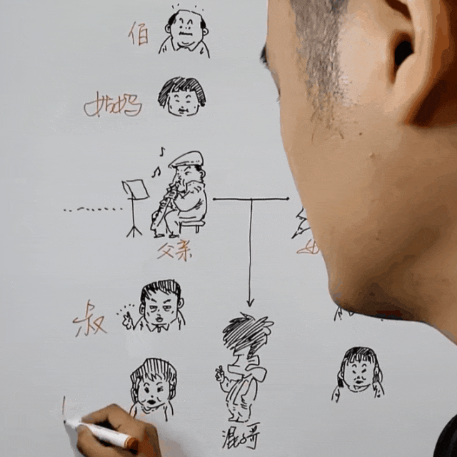 上面的,是爸爸的哥哥,比爸爸大,管他叫: 伯伯。