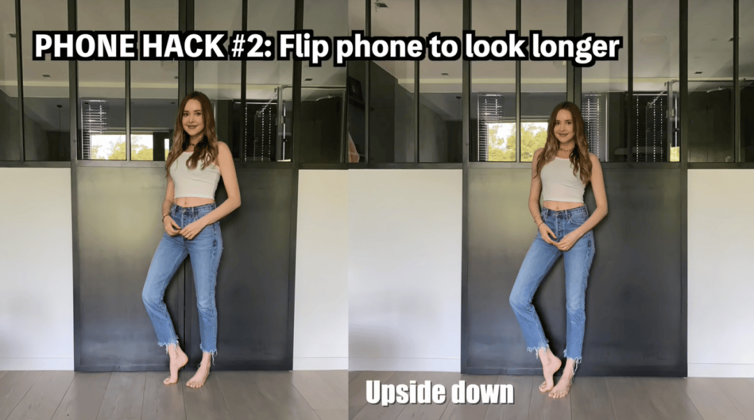 站着拍照,讲究的是挺拔,侧身、踮脚、露出脖子能让你整个人看起来更修长。(ps:手机倒过来拿可以无敌显高)