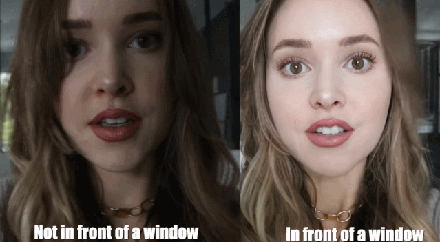 在没有打光板的情况下,家里光线最好的莫过于靠近窗户的位置,在自然光充足的情况下整个人呈现的状态会好hin多!