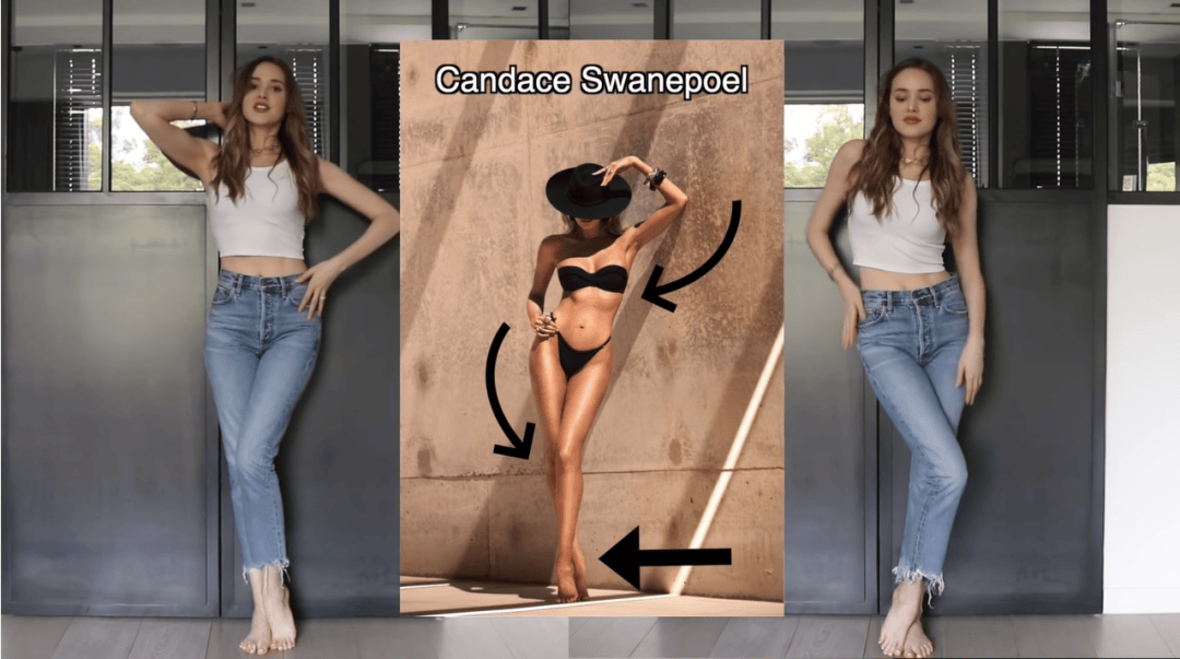 叉腰摸腿修饰腰线,可以凸显你的线条,看起来更有气质~