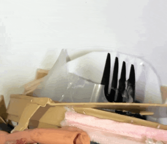 开始到处收集塑料碎片、旧玩具、包装件、瓶盖等等废弃品。
