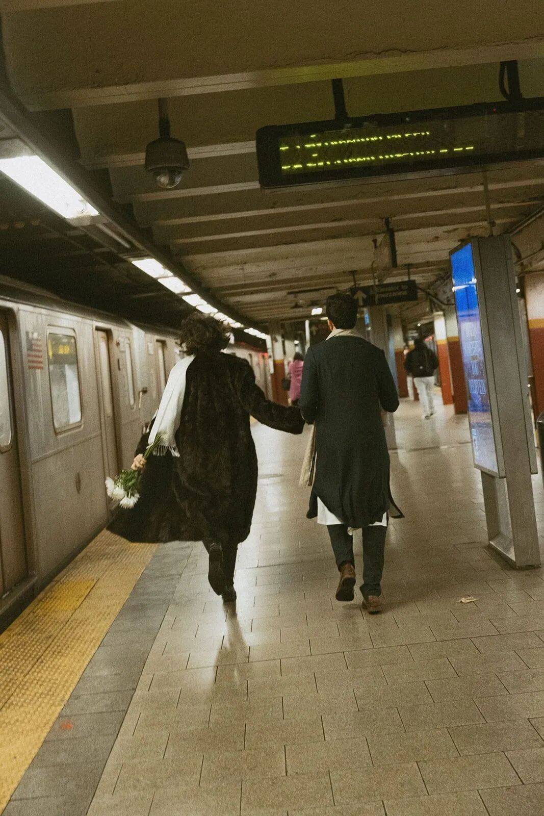 因此,大婚之日,二人打扮极简,搭乘地铁。
