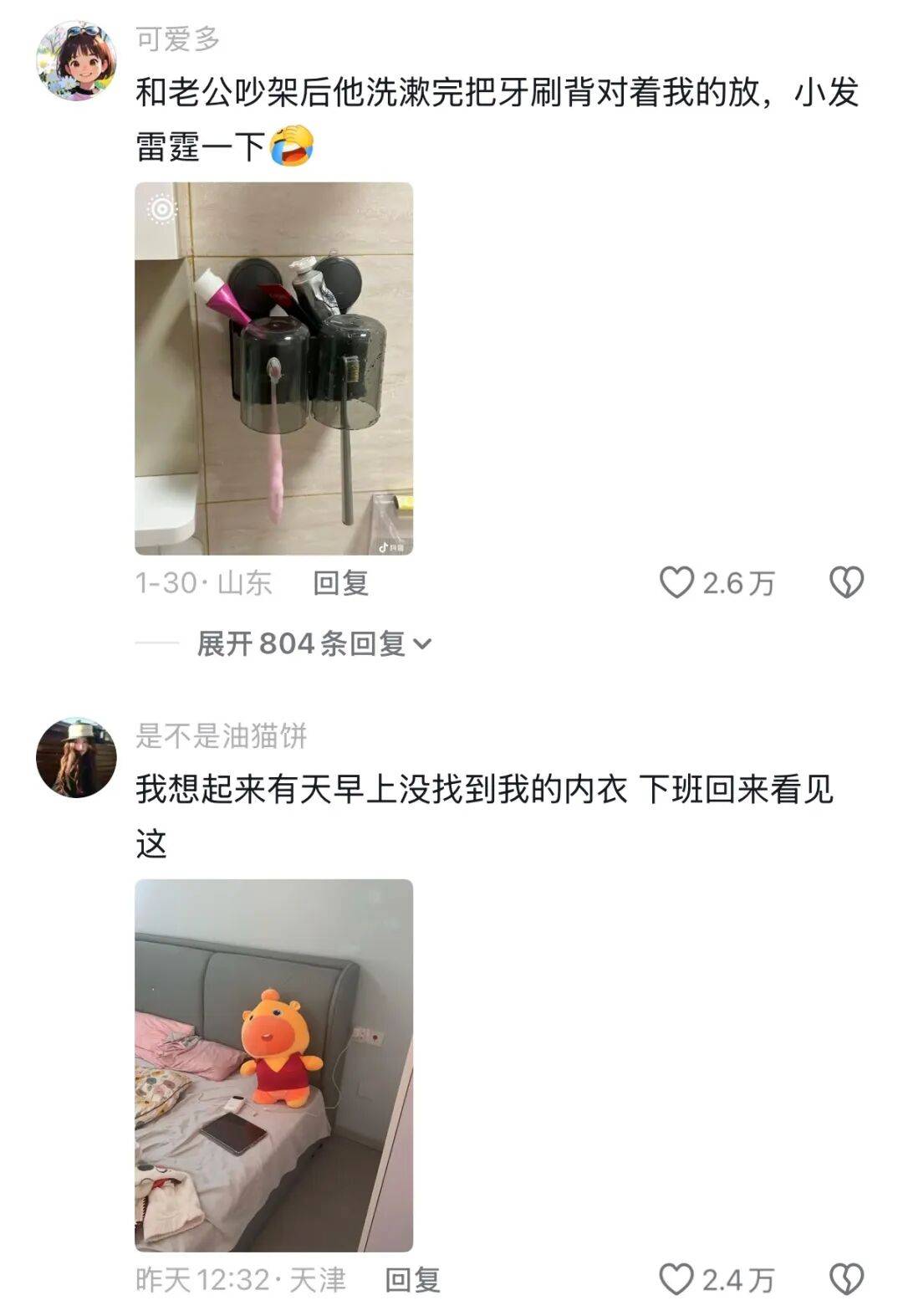 忘了哪看到的,吵架后老婆每天用老公的牙刷擦马桶,然后再放回去